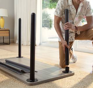 Four legs, one top and about 60 seconds of twisting. That’s all it takes to get our Studio Desk up and running. No tools required.